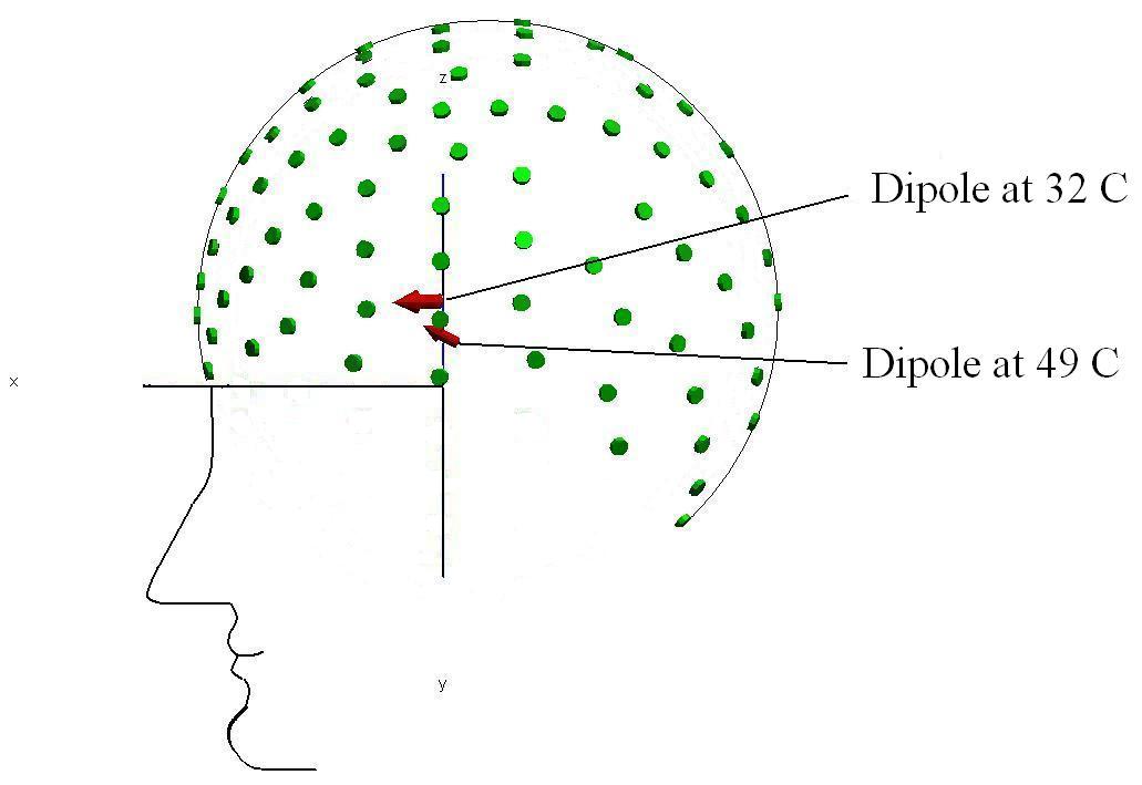 A. CHORAK1, S. FOLGER2, S. SMITH1, and G. ESSICK1, 1University of North Carolina, Chapel Hill, USA, 2Elon University, NC, USA | Objectives: The mechanisms underlying persistent musculoskeletal pain are poorly understood. A contemporary hypothesis is that the central nervous system (CNS) does not regulate touch and pain information for these patients as for pain-free individuals. To evaluate this possibility, we developed an experimental approach using EEG for studying CNS regulatory processes, and are studying how noxious (painful) thermal stimulation alters the cortical response to tactile (non-painful) stimulation. Methods: The time-dependent interactions in the activities of brain regions signaling touch versus pain were studied. EEG was recorded continuously and each trial consisted of 4 seconds of concurrent vibrotactile stimulation (26 Hz) on the digit2 finger pad and thermal stimulation (32ºC or ~49ºC) on the dorsum of the hand. The subject was instructed to pay attention to either the vibration or the noxious heat. The multichannel EEG data was segmented, visually inspected for artifact, bandpass filtered (20-50Hz), and cross-trial averages were calculated separately for vibration/heat-pain and vibration/32ºC trials. The average data was converted to the frequency domain and the frequency following response (FFR; i.e. the spectral peak at the vibrotactile stimulus frequency) was measured. FFR topography maps were evaluated and frequency domain inverse source modeling was used to estimate single dipole sources for each condition. Results: To date, we have studied pain-free subjects, each during 4 different recording sessions. The modeling demonstrated a dipole shift during the stimulation with noxious heat. The figure below demonstrates the dipole shift in one subject. Conclusion: In pain-free individuals, the application of noxious heat alters the manner in which tactile stimulation is processed by the cortex, reflected as a shift in the location of the frequency following response. Data will be presented to compare the shift in patients with temporomandibular disorders and pain-free individuals. Supported by NINDS P01 NS045685.